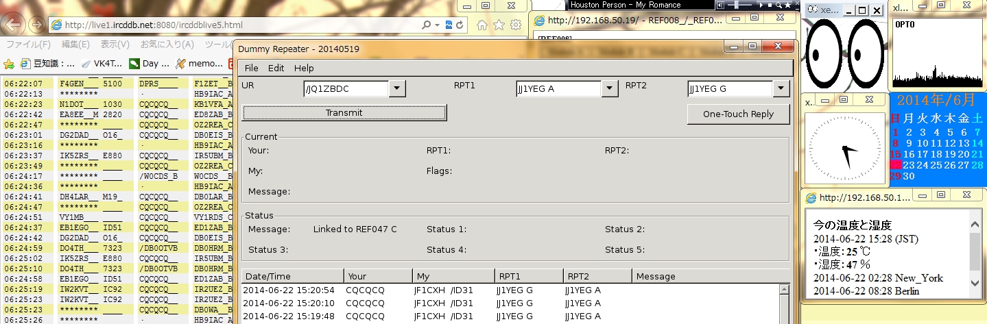 ircddbgateway + dummyrepeater を1PC上で走らせ、Win7のPC上でdummyrepeaterのボタンをX-windowのserver/client 機能を使って表示させ操作する。