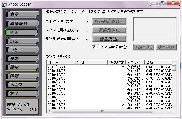 G:\UPPIC\CASIO\Image Library\に2005年からの写真・動画は保管されていたが、ブラウザでの表示ができなかったので、以下の手順で再構築